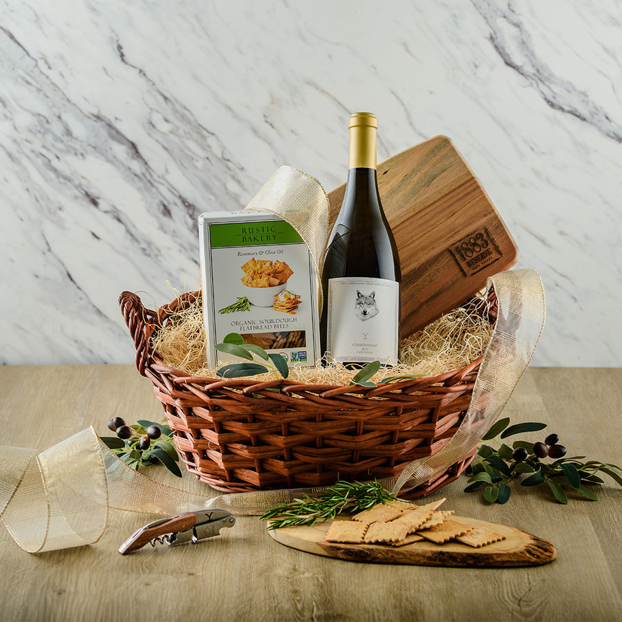 Leave a lasting impression with the Signature Bon Vivant Gift Basket. Featuring our Napa Valley Chardonnay, acacia cheese board, wine key and rosemary crackers, it’s the perfect way to thank clients or colleagues.