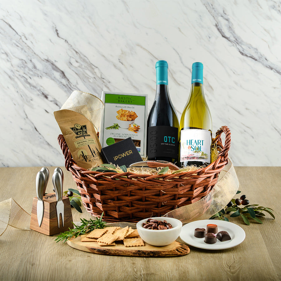 Invite a friend, find a shady spot and toast to good times with our deluxe picnic basket, filled to the brim with delicious bites, stemless glasses and an award-winning red wine.